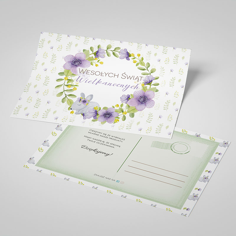 Wielkanocna kartka z eleganckim, fioletowym motywem i delikatnym wiankiem, zawierająca serdeczne podziękowanie oraz napis „Wesołych Świąt Wielkanocnych”. Stylowy i harmonijny design sprawi, że każdy odbiorca poczuje się doceniony i nastrojony na radosny, świąteczny czas. Idealna dołączka do prezentów i zamówień, budująca pozytywne relacje w Wielkanocnym okresie.
